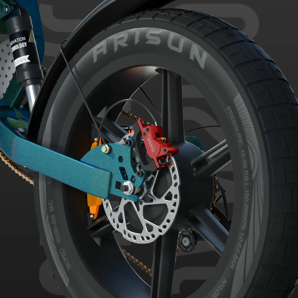 The rear suspension on an electric bike helps absorb shocks from bumps and rough roads, providing a smoother and more comfortable ride. It improves stability and control, reducing rider fatigue on longer or uneven journeys.